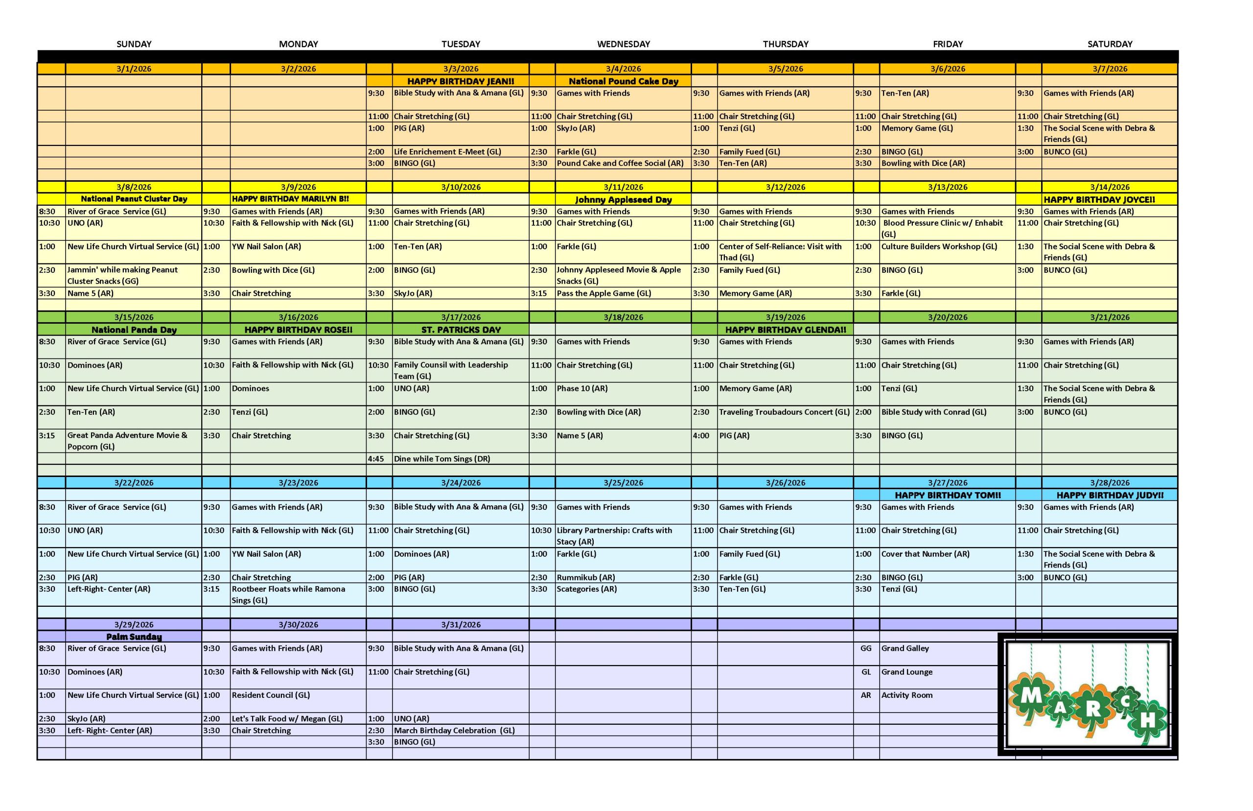 Home » Community Life » Signature Programs » Rhythms Life Enrichment » Life Enrichment Calendars